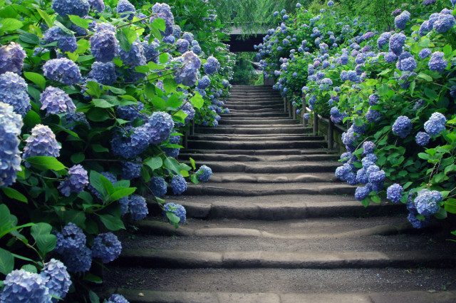明月院にあるアジサイのほとんどが日本古来の姫アジサイ。はじめは淡い水色で時間の経過とともに少しずつ深みを増し、最終的に鮮やかな藍色へと変化していく独特の色合いは“明月院ブルー”と呼ばれています。特に、鎌倉石でできた参道の両側にずらりと並ぶアジサイがまるでアジサイのトンネルのようで、風情あふれるフォトスポットになっています。住所 神奈川県鎌倉市山ノ内189 電話番号 0467-24-3437 ウェブサイト1 https://www.trip-kamakura.com/place/japanheritage/230.html アクセス JR北鎌倉駅より徒歩10分 料金 【拝観料】 高校生以上:500円 小中学生:300円 障がい者:無料(要障がい者手帳) ※付添1名無料 団体の場合、事前に免除申請が必要 【本堂後庭園公開】 拝観料と改めて500円 備考 【拝観時間】 9時00分~16時00分 ※6月 8時30分~受付終了16時30分、閉門17時00分 -