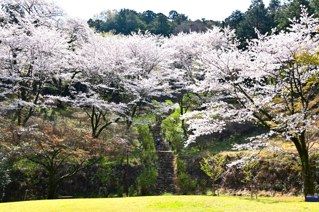 桜の名所として地元の人からも愛される城山公園。3月下旬からは桜の広場でソメイヨシノやヤマザクラが咲き誇る、「かながわの花の名所100選」にも選ばれた桜が鑑賞できます。また、桜だけでなく、5月の中旬頃と11月上旬頃はバラも見頃になります。
