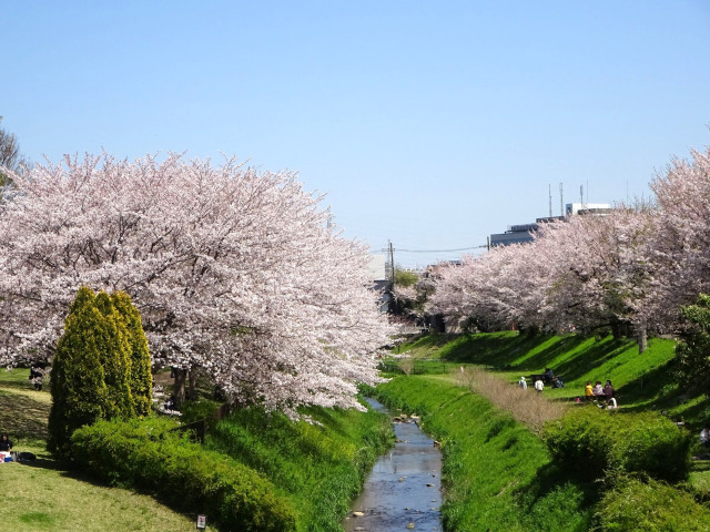 県立の都市公園としては初めての河川公園で、丹沢大山の展望を楽しめる相模川河川敷に広がる空間を活用しています。公園内には鳩川が流れ、川沿いには桜並木と遊歩道があり、春になると多くの人が桜を見に訪れます。河川敷には野球場やパークゴルフ場のほか広々とした芝生公園もあり、のどかな自然の中でゆっくりできるのも魅力です。河川環境が学べる自然観察園もあるので、ぜひ立ち寄ってください。