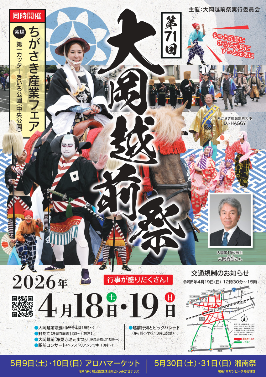 茅ヶ崎市では、2026年4月18日(土)と19日(日)に、毎年恒例の「大岡越前祭」が開催されます。
