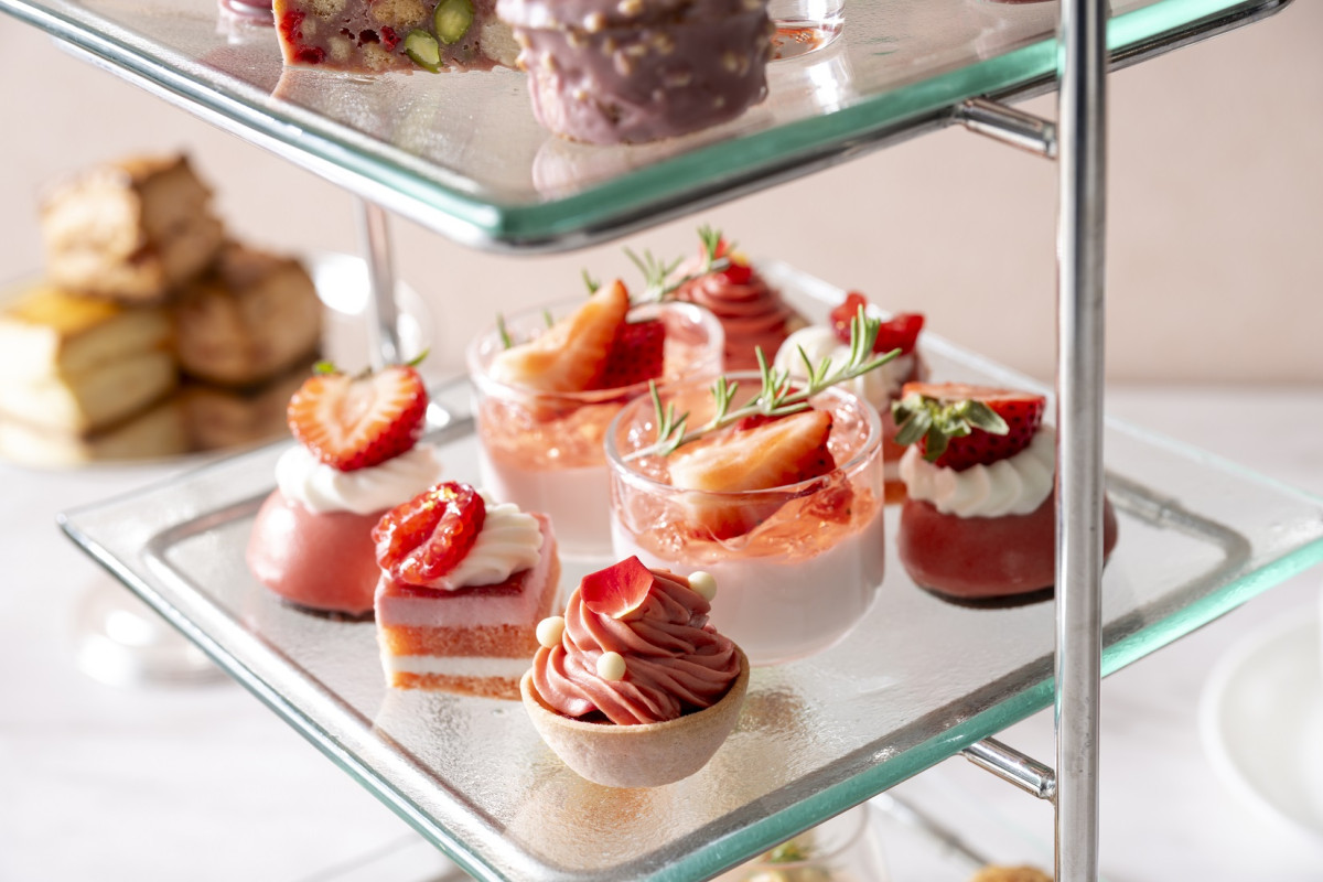 赤とピンクに彩られたスイーツが可憐な「いちごとルビーショコラのアフタヌーンティー」