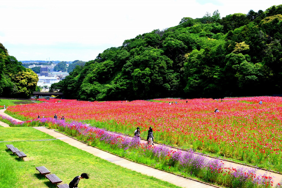 横須賀市の くりはま花の国 では、2026年4月11日(土)から5月31日(日)まで、恒例の「ポピー・ネモフィラまつり」を開催します。