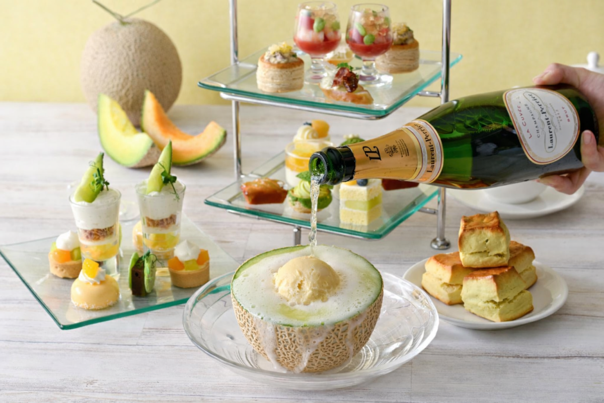 さらに、アフタヌーンティーに欠かせないスコーンは、定番のプレーンに加え、メロンピューレを練り込んだ香り豊かなメロンスコーンが提供されます。