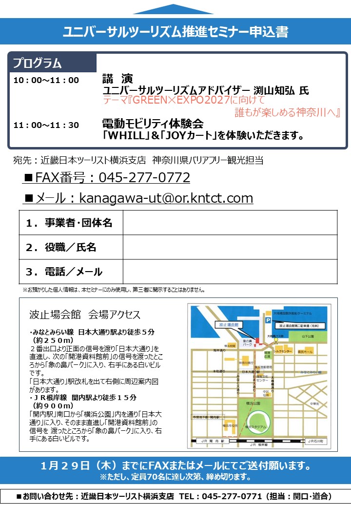 ■申込先:近畿日本ツーリスト横浜支店神奈川県バリアフリー観光担当