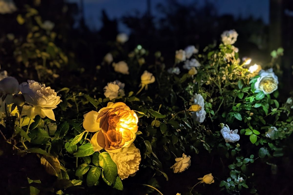 花菜ガーデンの灯りのイベント「夕暮れのバラ園」について