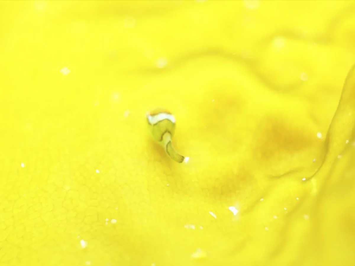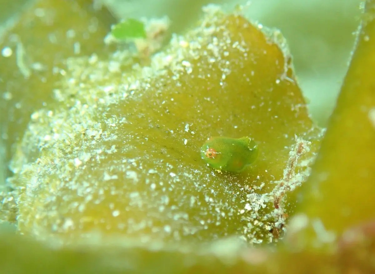 この模様が見られるのは体長3〜5mmほどのごく短い期間だけで、成長とともに消えてしまうため、出会えたらとても貴重。