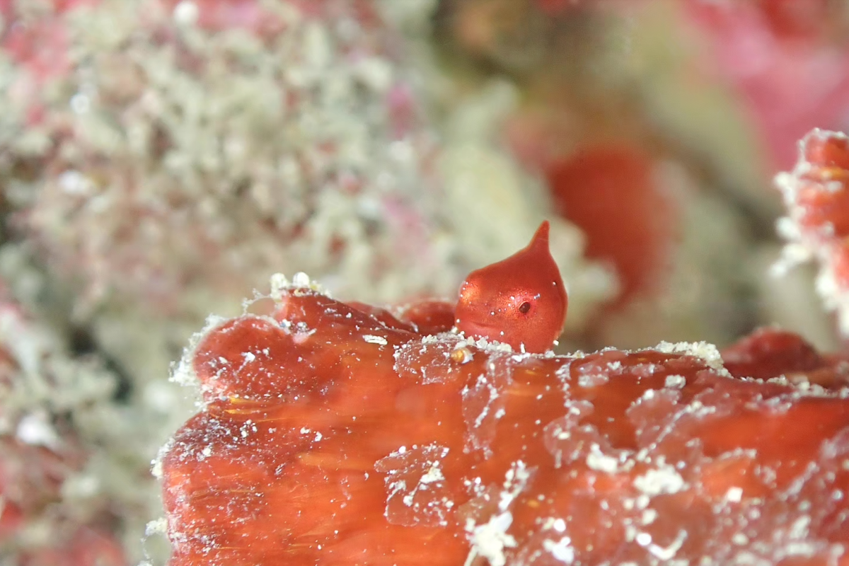 三浦半島・城ヶ島は、都心からのアクセスも良く、豊かな海藻林と多様な生態系が広がる神奈川県を代表するダイビングエリア。この時期には体長1〜2cmほどのダンゴウオが姿を現し、孵化直後には頭部に「天使の輪」と呼ばれるリング模様が見られることもあります。