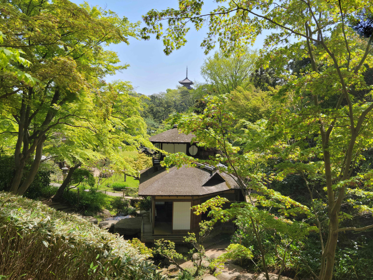 国指定名勝「三溪園」では、新緑が美しい内苑奥の遊歩道を特別に開放します。渓谷に沿って散策しながら、三重塔、聴秋閣と新緑が織りなす絶景をお楽しみいただけます。また、この時期にはシャガ、ヤマブキ、フジ、ツツジなどの花も見ごろを迎えます。