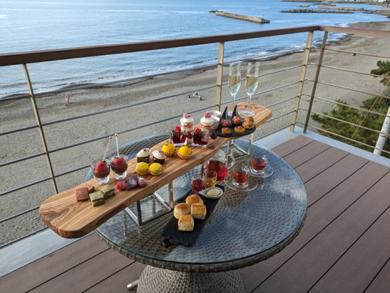 ・目の前の森戸海岸を眺めながら「SCAPES THE SUITE」でゆっくりアフタヌーンティーを。