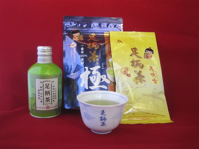 足柄茶(相模原市・小田原市・秦野市・南足柄市・中井町・松田町・山北町・開成町・湯河原町・愛川町・清川村)丹沢・箱根山麓一帯で生産される茶葉を、普通蒸し製法で仕上げた伝統的な銘柄茶。 -
