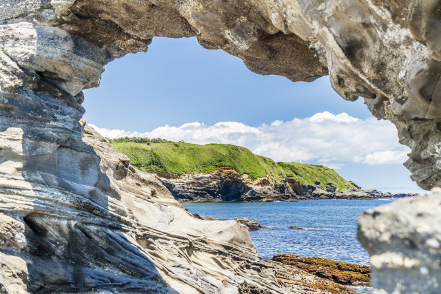 城ケ島(三浦市)三浦半島の最南端に位置する城ケ島は、「ミシュラン・グリーンガイド・ジャポン」で2つ星を獲得。観光スポットとして人気の「馬の背洞門」は、波や雨風の浸食によってできた洞窟。穴から雄大な太平洋の景色を望めます。島内には海浜植物や野鳥が多く生息し、毎年1月中旬から八重咲水仙が見頃に!