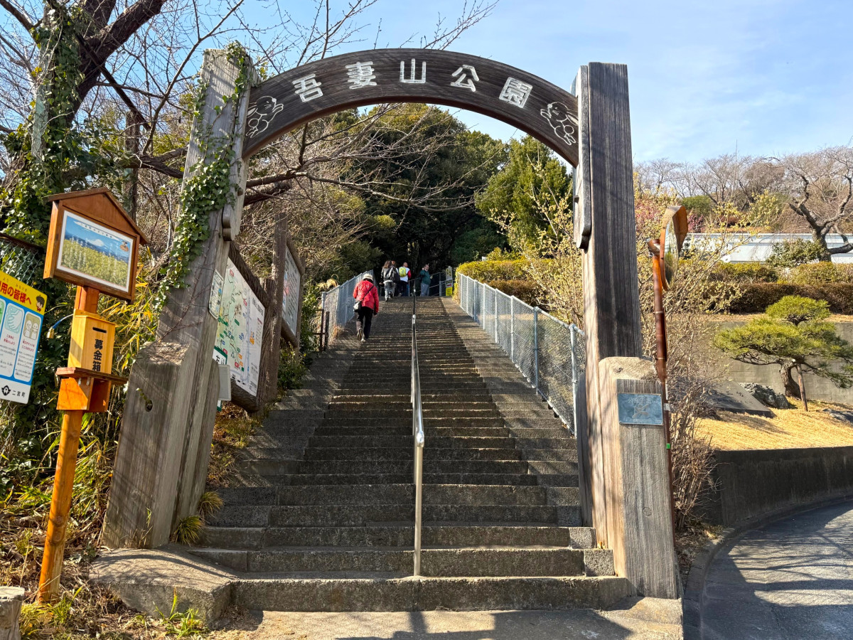 吾妻山へのメジャーなスタート地点は、JR二宮駅から徒歩5分の「役場口」。頂上までは約300段の階段になっていて、所要時間は20分程です。