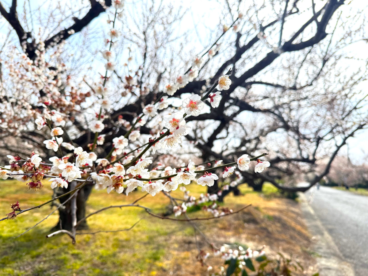 一つ一つの花は小さく可憐ですが、約35,000本という梅の花が見頃になる時期は圧巻。時折強い風が吹くと、白い花びらが舞ってまるで粉雪のような幻想的な景色に。