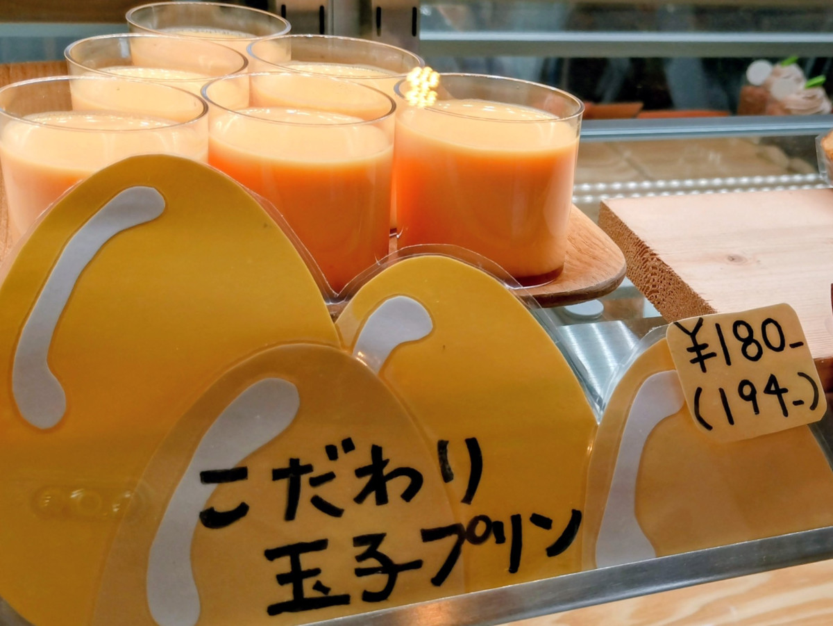 焼き菓子、ケーキ、プリンなど、店内にはたくさんの種類の美味しそうなスイーツが並んでいます。