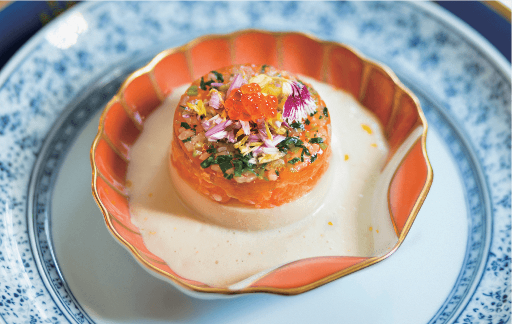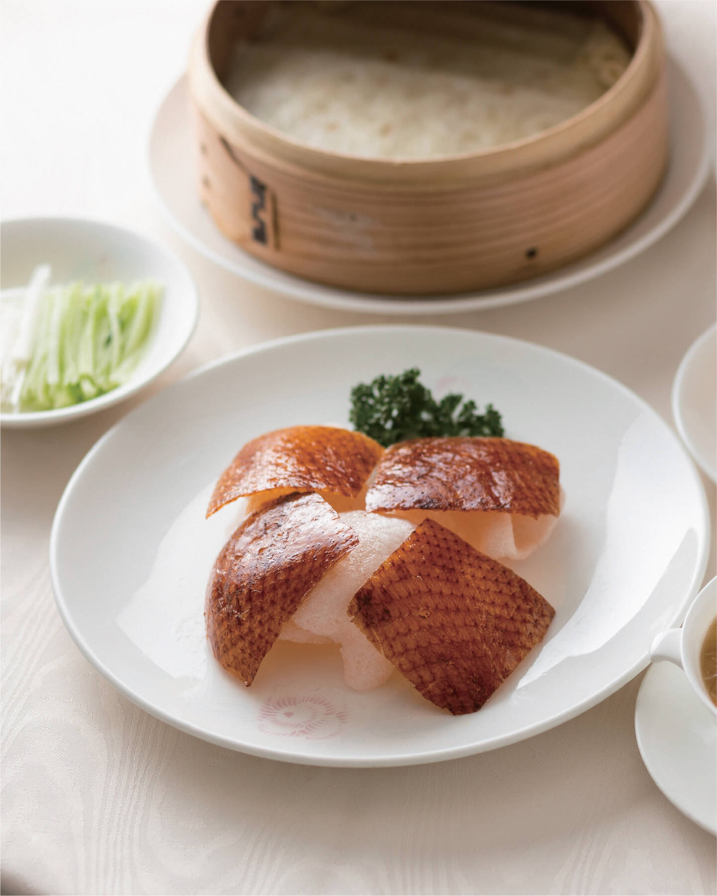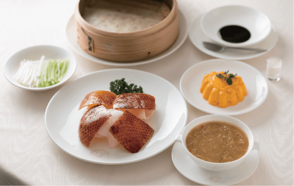 人気メニューの北京ダックは、香ばしい香りが漂うパリッと甘めな味わいで、もちもちな皮と特製ソースがよく合う。蟹肉入りフカヒレのスープは、「よくある醤油ベースのフカヒレスープとは違って、鶏を長時間煮込んだ白湯のコクが強く、濃厚さや旨味の深さが際立っていて新しい味ですね」とミネさんも驚く。果肉が詰まった濃厚な味わいのマンゴープリンはデザートに。華正樓の体験は「料理そのものの味だけでなく、空間やサービスも含めてより美味しく感じられました。本場の北京料理らしい味わいも新鮮でした」と締めた。