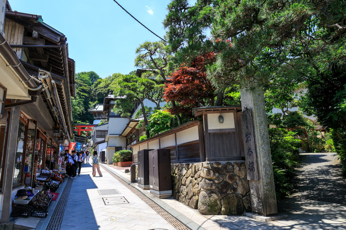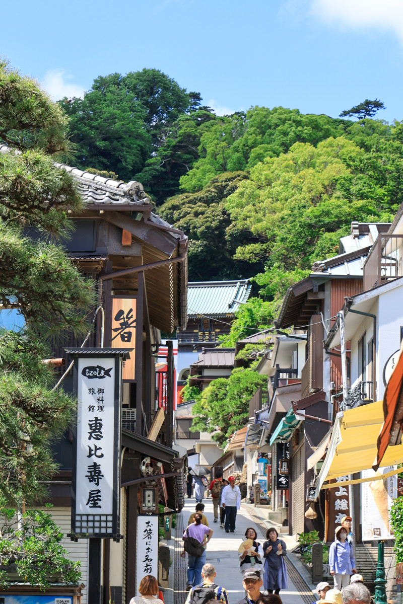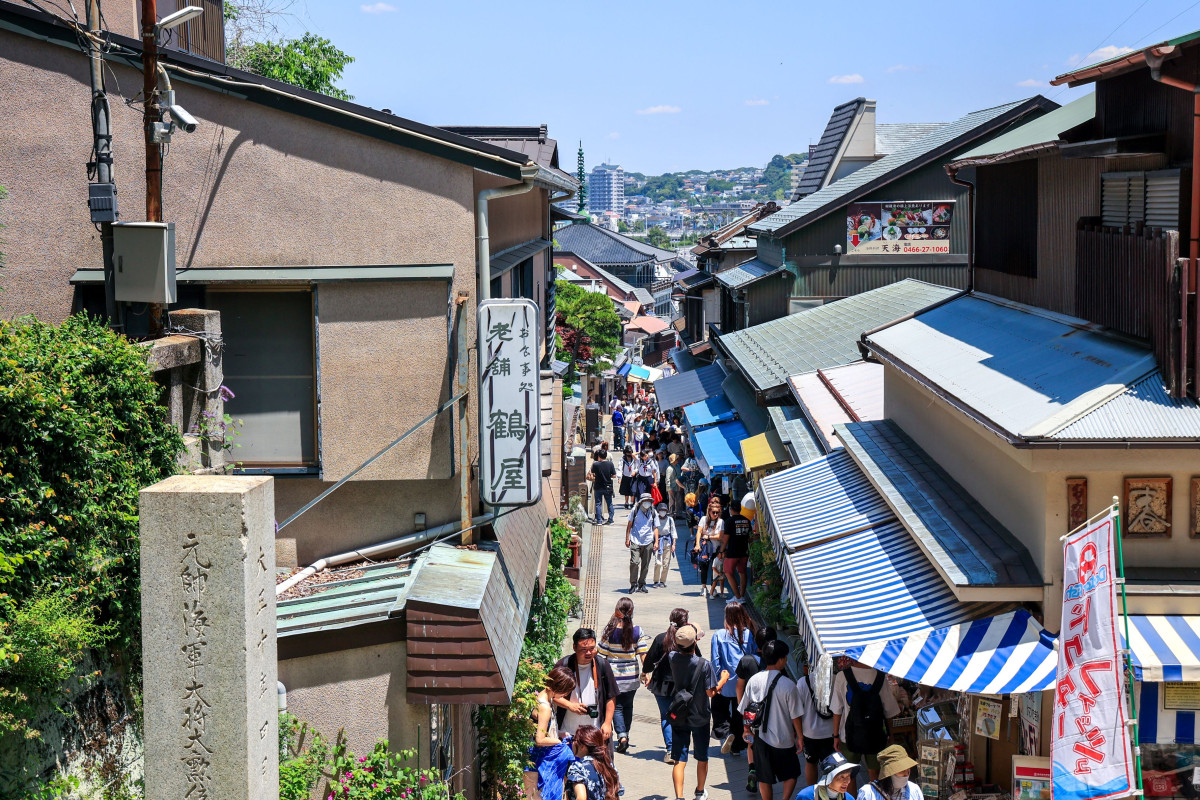 江の島の入口から江島神社までの参道に連なる歴史ある商店街です。旅館や飲食店、土産物店などが並び、多くの観光客で賑わっています。