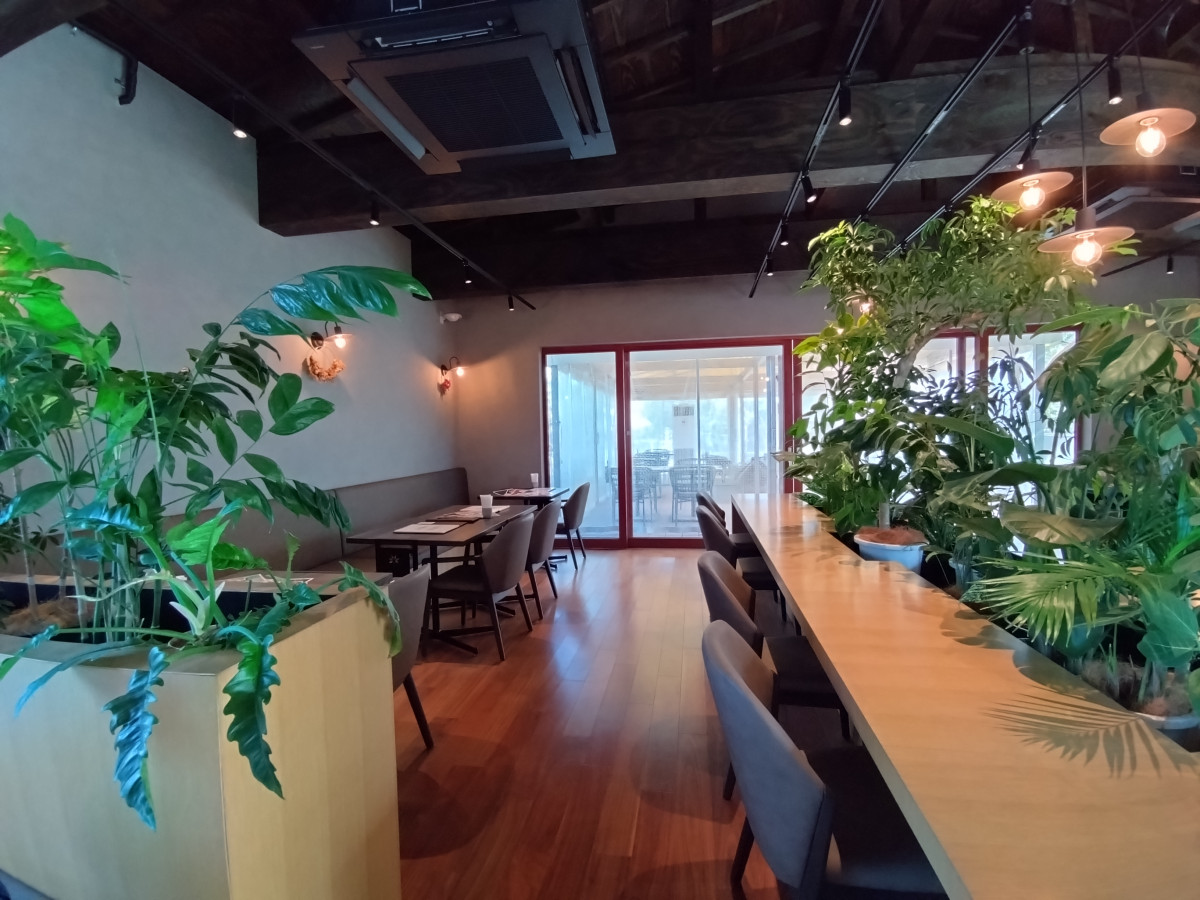 店内は落ち着いた雰囲気、テラス席は開放的な雰囲気を楽しめます。