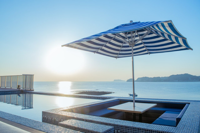 ゆったりと寛げるサニーベッドが並ぶプールサイド。さらに、水上にはプライベートラウンジも完備しています。ここからは、鎌倉の海と、真正面に浮かぶ江ノ島、そして雄大な富士山が織りなす、湘南屈指の壮大な景色を存分にお楽しみいただけます。住所 〒249-0008