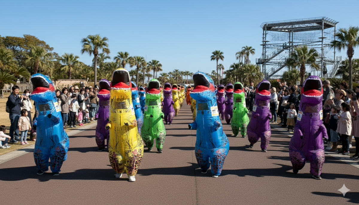 さらに、音楽に合わせて園内を行進する「ティラノパレード」も初開催。そのほか「ティラノ綱引き」や「ティラノファッションコンテスト」など、多彩なプログラムが予定されており、会場を盛り上げます。