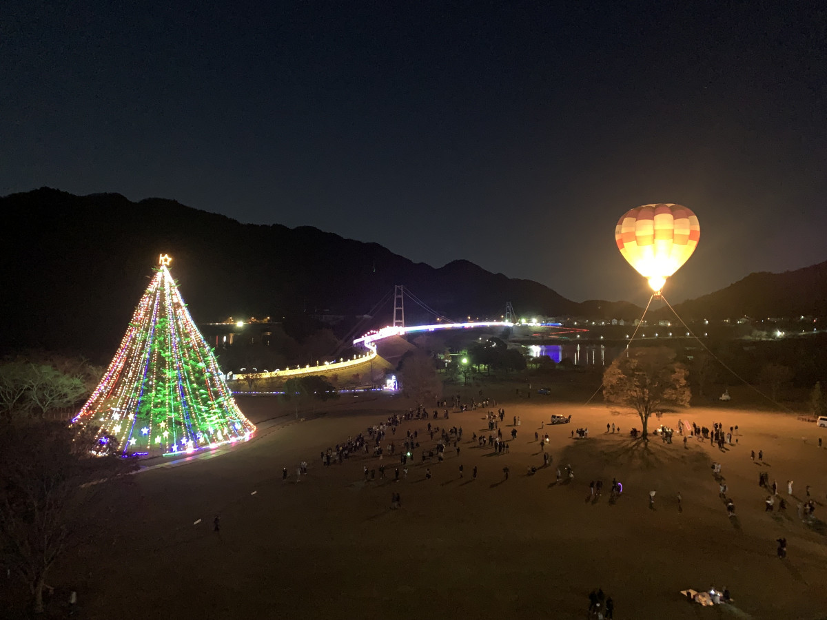 昨年度に引き続き、水の郷大吊り橋(長さ315メートル)へのイルミネーションも実施され、夜間通行(有料)も実施します。