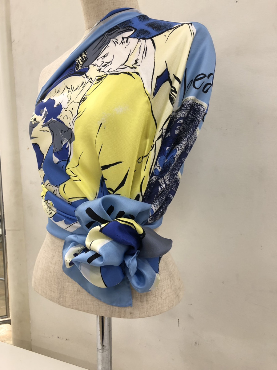 シルクスカーフで、キュートなシュシュ作り体験、髪にもスカーフ、ストールにも使用できます。