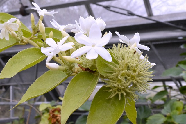 グリーンハウスではコバンの木の葉に白い