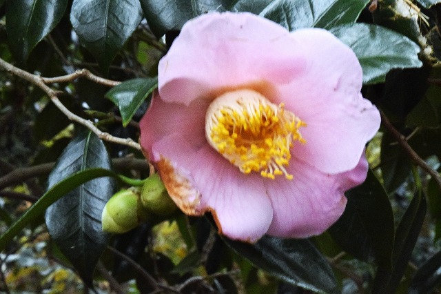 つばき園では綾錦が開花しました。