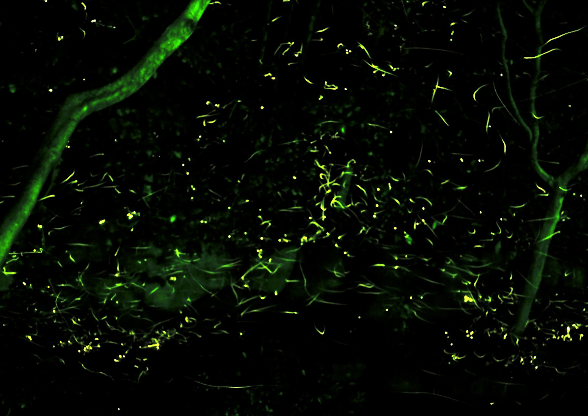 万葉公園の水際にゲンジボタルが舞い踊ります