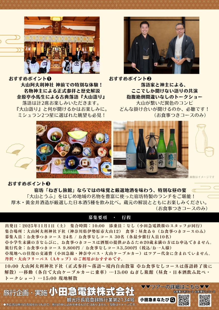「落語でひもとく大山詣り」~語りと大山とうふ会席・地元日本酒を味わう~【小田急電鉄】