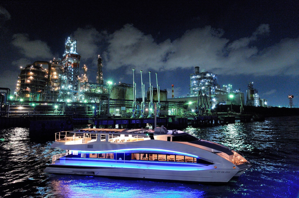 工場夜景に花火鑑賞がプラスされた特別バージョン