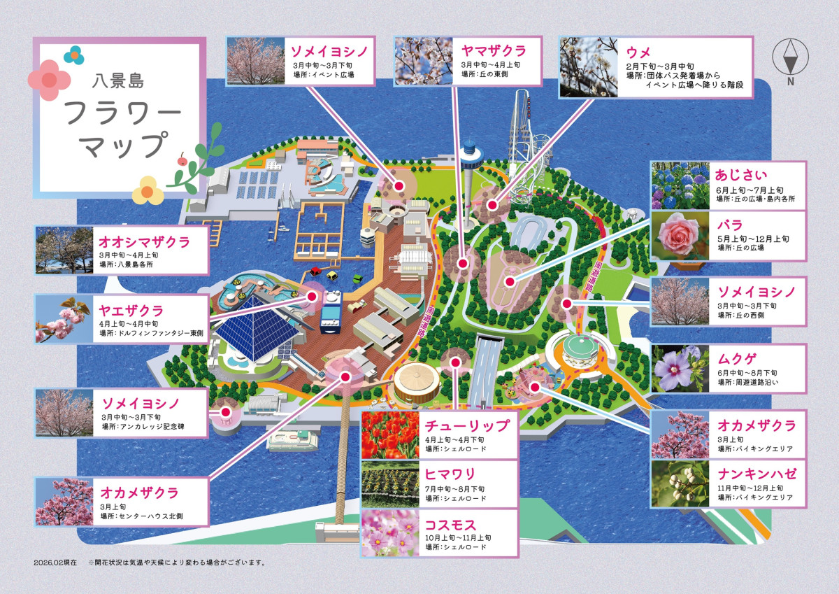 横浜・八景島シーパラダイスでは、2026年3月2日(月)~4月24日(金)の期間、「生きものたちと花々の競演」をテーマとしたイベント「はなパラ」を開催します。八景島では3~4月にソメイヨシノやオオシマザクラなど5種700本の“桜”が、5~6月には約100種500株の“バラ”や、県内最大級の2万株の“あじさい”が咲き誇り、島全体が色彩豊かな花の島となります。