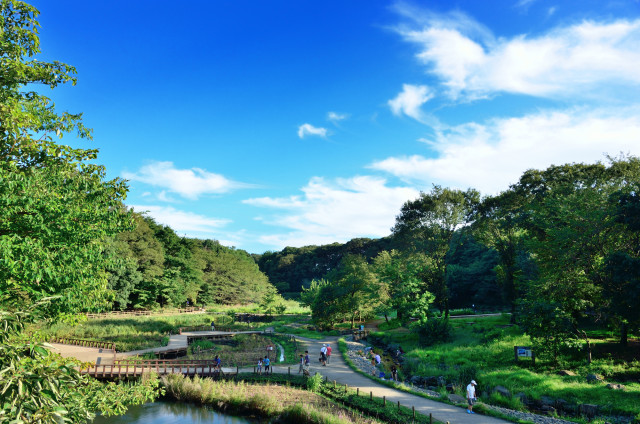 【ショウブ】生田緑地枡形山広場と展望台(生田緑地内)標高84mの枡形山は、鎌倉時代の源頼朝の侍大将であった稲毛三郎重成が城を構えたと伝えられています。春にはサクラが咲き誇り、お花見客で賑わいます。展望台からは東京都心や多摩川など360度のパノラマが楽しめます。※ 展望台開放時間 9:00~17:00 【施設概要】川崎市北西部に位置する生田緑地。かつての里山の風情を残し、ゲンジボタルをはじめとした多様な動植物が生息する、緑の宝庫です。春には枡形山のサクラ、初夏にはハナショウブ、秋には美しい紅葉など、四季折々の自然を感じられます。園内には、各地の伝統的な民家を集めた「日本民家園」、川崎生まれの芸術家の「岡本太郎美術館」、プラネタリウムのある「かわさき宙(そら)と緑の科学館」など個性あふれる文化施設が点在。さまざまな楽しみ方ができるのも魅力です。【花の見頃】ヤマツツジ:5月上旬、ヤマユリ:7月中旬~8月上旬、カンツバキ・サザンカ:12月~2月生田緑地のしょうぶ園には約 2800 株のハナショウブが植栽されています。例年の花期は 5 月下旬~6 月中旬です。しょうぶ園の中心には東屋が立っており、風情ある風景を楽しむことができます。(ハナショウブが植わっている池の面積:785 ㎡。)
