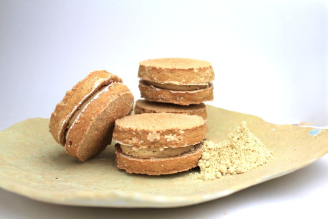 相模原市で育てられた 津久井在来大豆を丁寧にきな粉にし、生地とクリームの両方にたっぷり使用。アーモンドときな粉本来の香りが際立つ生地で、たっぷりのバタークリームをサンドした、まるで生菓子のような口どけです。“サクフワッしっとり” の食感で、グルテンフリー(小麦不使用)ながら、奥行きのある味と香ばしさが楽しめます。素材の良さがダイレクトに伝わる、濃厚でありながら上品な味わいが魅力の逸品です。