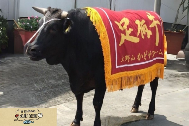 かながわの名産100選に選定されている「足柄牛」は、水が非常に豊富な足柄平野。自然豊かな山々に囲まれた足柄平野で健やかに育まれる牛たちです。一定の基準を満たした指定生産農場にて、検査に合格した牛のみが「足柄牛」として市場に出されています。かながわ名産の100選である「足柄茶」をまだ子牛の時期に与えることで、カテキン効果による内蔵のストレス、アレルギー関節や骨などの障害を防ぎ、つやのある健康な成牛へと成長させる役割を果たしています。
