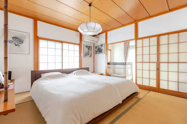 民泊 シモアテラス小田原鴨宮JR鴨宮駅から徒歩圏内の静かな住宅街に位置する、1日1組限定の一棟貸しゲストハウスです。「shiamoterrace」は、築60年の日本家屋をフルリノベーションした趣ある一軒家。畳の上で手足を伸ばしてのんびり寛げる良さはそのままに、バスルームやキッチンなどの水回りは清潔で機能的に一新されており、どなたでもストレスなく快適に過ごせます。最大8名まで利用できる約90㎡の室内には、広々としたキッチンや洗濯機も完備。長期滞在はもちろん、海遊びやアクティビティ後の衣類ケアも万全で、自宅にいるかのようにリラックスして過ごせます。小田原観光の中心地としてはもちろん、箱根などの人気観光地の賑わいから離れて静かに過ごしたい方や、近隣エリアへ日帰りで足を延ばしたい方の「賢い旅の拠点」としても最適です。家族や友人と、ゆったりとしたプライベートな時間をお楽しみください。
