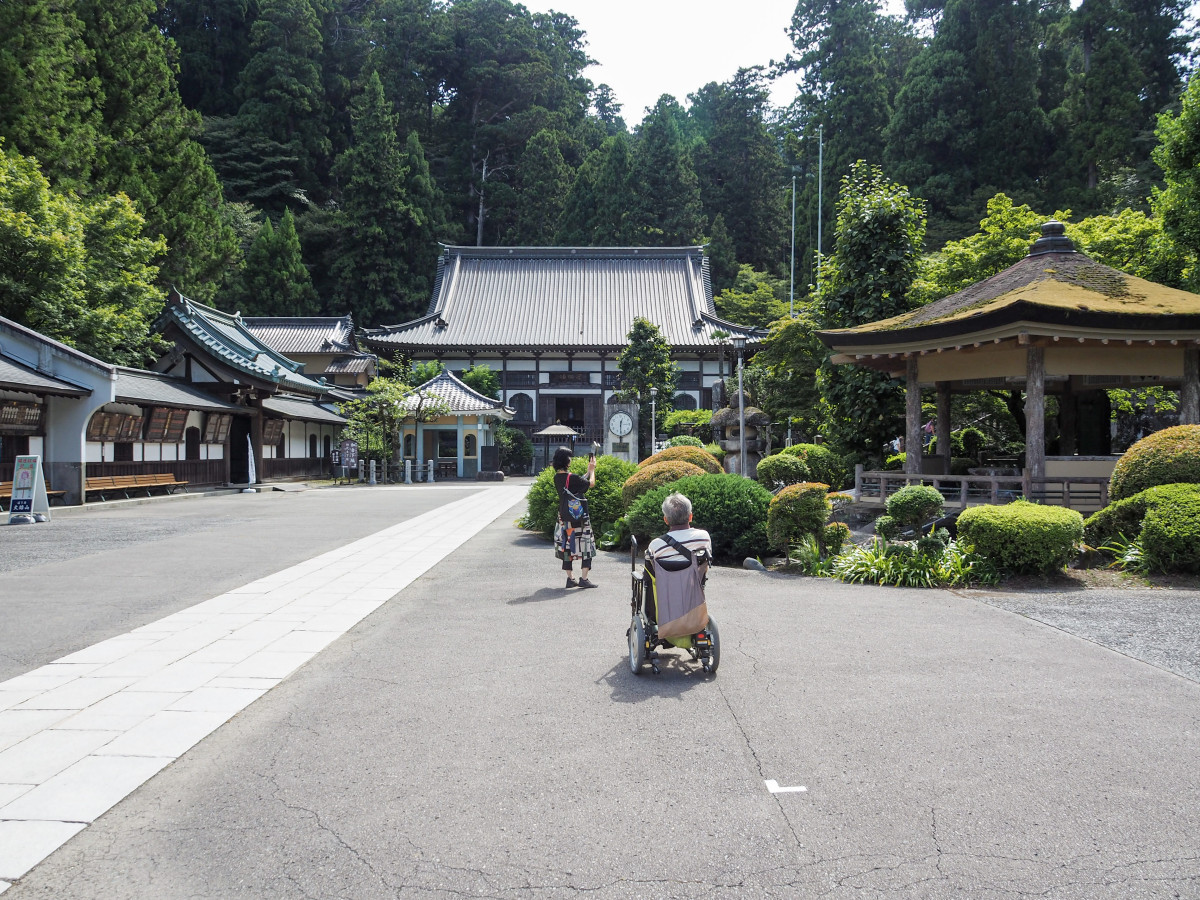 まずはやっぱりその雰囲気。タクシーで山を上がっていく間もすでに杉並木が美しくて、着いてからもマイナスイオンがいっぱい感じられて気持ちよかったです。天狗の伝説があるそうで、その履物の大きな赤下駄はスロープがちょっと急ではありますが、階段の上から見ることができました。私が行けなかった場所でとてもよいところがあったと妻が話していたので、車いすで動ける範囲がもう少し広ければよさそうですね。それでも、雰囲気がとてもよい古刹でした。