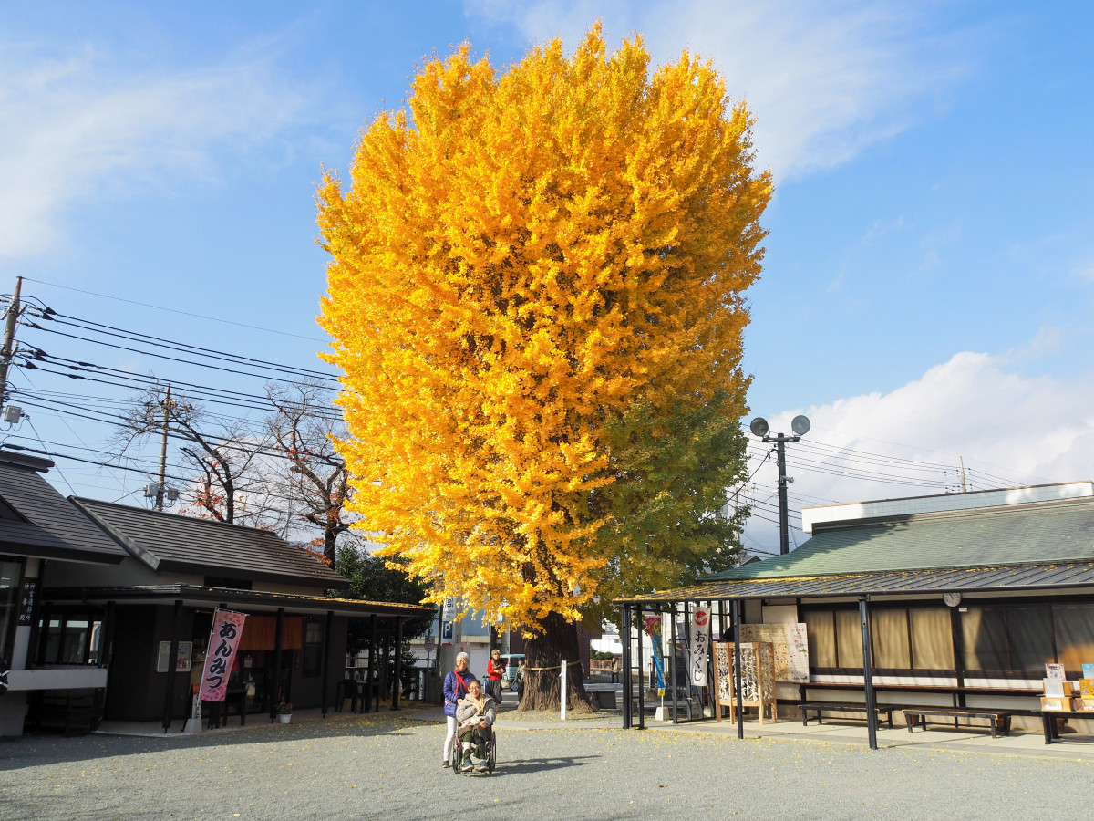ここからはもともと社寺好きの私にとって、とても楽しみにしていた三社巡り。そのトップバッターは、さすが、創建400年以上の名社でした。特にお気に入りは、やっぱり境内の大イチョウ。木の大きさはもちろん、葉の黄色の色づきがすばらしかったです。あの存在が土地の豊かさ、清らかさに繋がっていると思いますね。どんなイルミネーションより輝かしい自然の煌めきで、その木(気)に触れられて幸せでした。あと、神社には夫婦円満のご利益がありましたが、そこはノーコメント(笑)。でも、おみくじで吉が出て、「願望は大きく持て」、「旅行家族でよし」。新たな年に向けて、我が家も問題なさそうです。