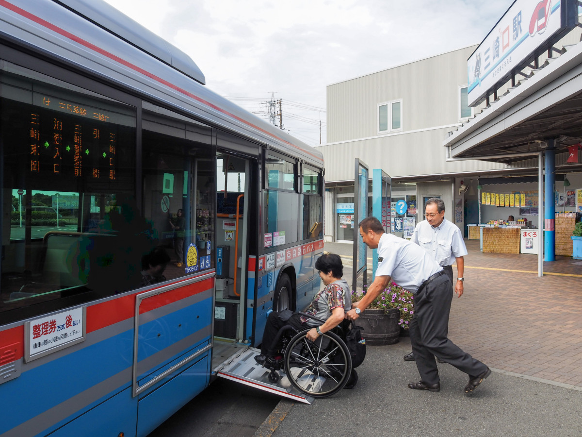 三崎口駅は電車を降りるとすぐにエレベーターがあり、移動距離も短くスムーズに改札を抜けられました。また、トイレも改札の近くにあって便利です。さらに、すぐ駅前からバスが出ているのも高ポイント。スロープもすぐに出していただけましたし、約30分のバス旅は車窓からの風景も港町の旅情を楽しめました。駅から城ヶ島まで、始発から終点という便利さも慌てなくてよかったですね。