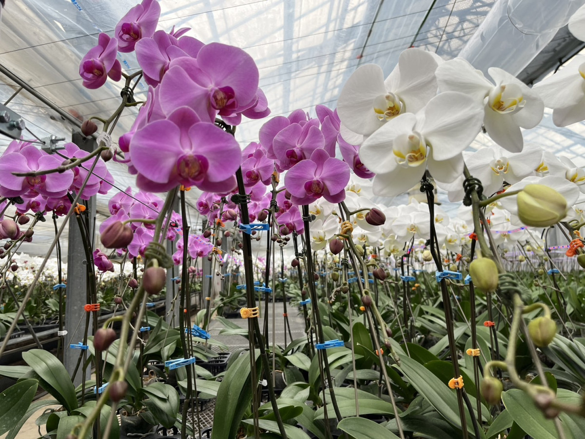 胡蝶蘭の栽培は、温度管理と光量管理が難しく、昨今の夏の猛暑対策や冬の暖房には電気代の高騰で大変苦労しているとのこと。