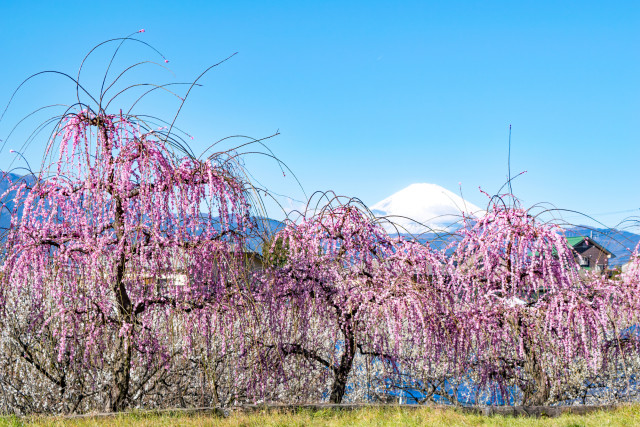 【ウメ】曽我梅林小田原市にある曽我梅林は梅の名所で、毎年2月初旬から3月初旬にかけて「小田原梅まつり」が開催されます。別所、原、中河原の3つの地区から構成され、富士山と箱根の山々を背景に約3万5千本の梅が咲き誇ります。一番広いのは別所会場で、柑橘類や野菜の販売、おみやげ、飲食を楽しむことも。仇討ちで有名な「曽我兄弟」のゆかりの地でもある曽我の里。たくさんの史跡を巡りながら、眼下に広がる相模湾や富士山を堪能できるウォーキングコースもおすすめです。