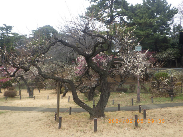 【ウメ】茅ヶ崎市茶室・書院 松籟庵(しょうらいあん)旧別荘時代に作られた庭園をそのまま生かした廻遊式の純日本庭園。泉池や石橋、梅林、薬師寺の三重塔を模した小塔などが配されています。水仙、桜、ツツジ、紫欄(シラン)、藪蘭(ヤブラン)、カエデ、万両などが植えられ、四季の花々や緑を一年中楽しむことができる園内。例年2月中旬~3月上旬には梅の花が庭園を紅白に彩り、香りとともに春の訪れを告げてくれます。日本庭園の奥には茶室・書院の「松籟庵(しょうらいあん)」があり、茶道など伝統芸能の練習の場として有料で貸し出しを行っています。