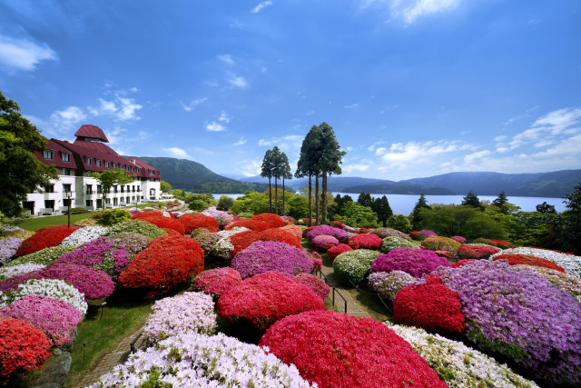 【ツツジ・シャクナゲ】小田急 山のホテル箱根・芦ノ湖畔に佇むクラシカルな「小田急 山のホテル」。かつて三菱の岩崎小彌太男爵の別邸だったこのホテルの庭園では、富士山や芦ノ湖を背景に四季折々の花々が咲き誇ります。特にツツジとシャクナゲは「ナショナルコレクション」の認定を受けたとても貴重な花々。4月下旬から5月中旬には、84品種約3000株のツツジと約40品種300株のシャクナゲが最高の見頃を迎えます。丸く刈り込まれた「玉仕立て」のツツジや大ぶりで優雅なシャクナゲは一見の価値ありです!さらに開花時期には「つつじ・しゃくなげフェア」も開催され、訪れる人々を楽しませてくれます。斜面にはスロープが設置されているので、車椅子やご年配の方も安心して散策できます。神奈川県内でも稀少なこの施設で優雅なひとときを過ごしてみませんか?