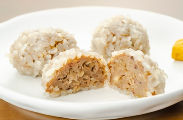 カジキまぐろの茜身のミンチと本まぐろの茜身の漬け焼きをほぐしたものを野菜とともに練り上げてもち米で包み蒸しあげています。お好みで辛子醤油や辛子酢でいただくのもおすすめです。