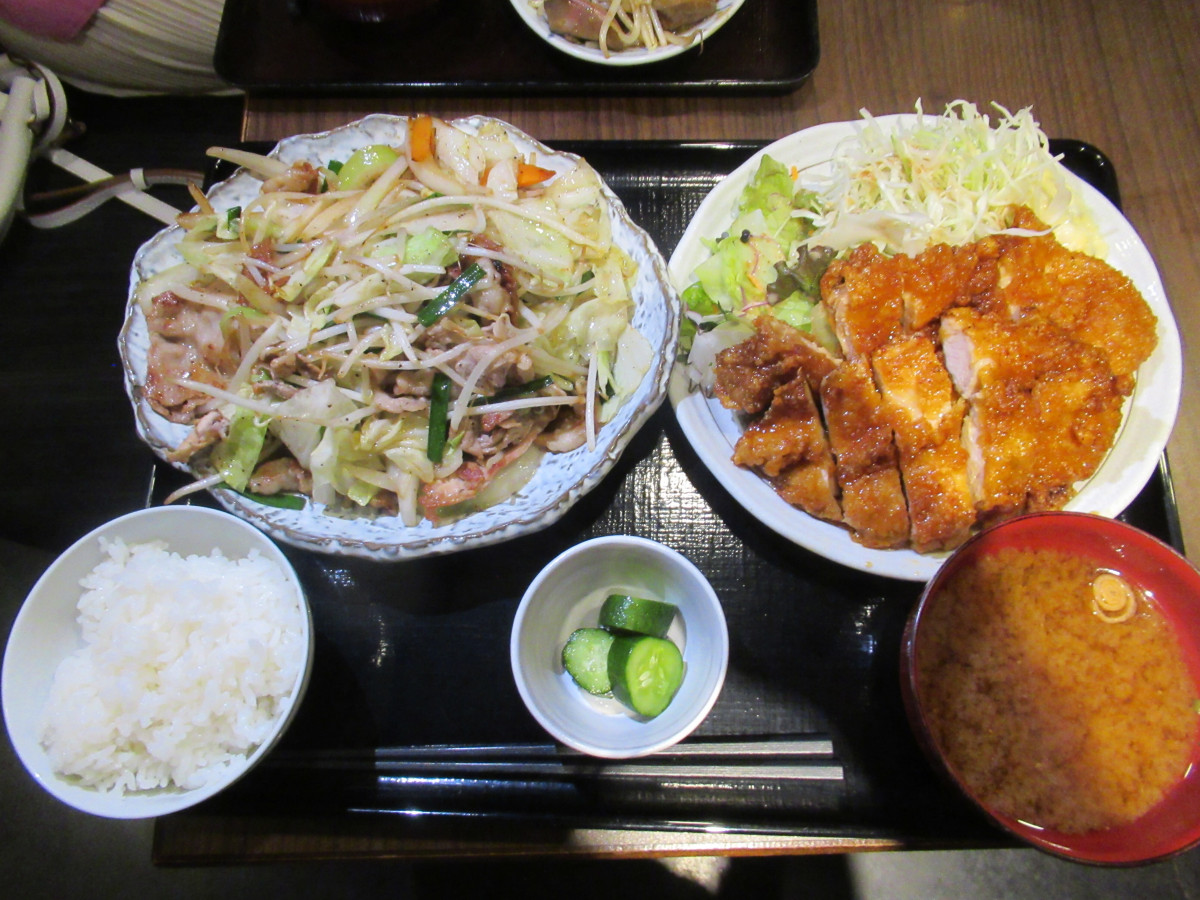 大きめの鶏肉を甘醤油に漬けた後じっくり焼いていますので、ジュワッと染み出す肉汁に香ばしさが香ります。(写真右上・左上はアッサリ肉野菜炒め)