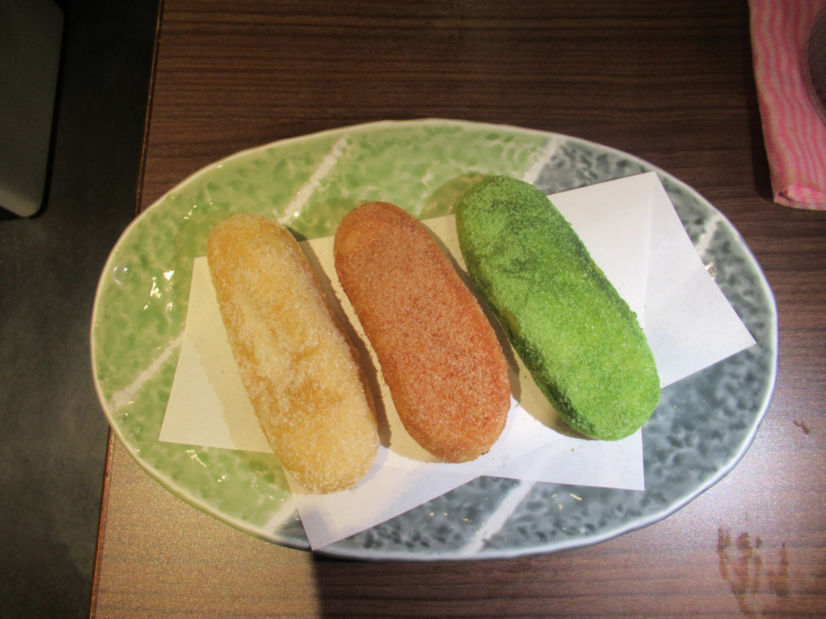 ふわっふわっ もちもち‼の食感がたまりません。 小ぶりで食べやすいサイズ(写真は左からメロン(期間限定)・シナモン・抹茶味)他に9種類もあります。