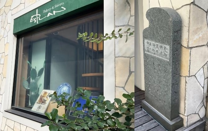 店舗前には「旧東海道鶴見 覇王樹茶屋跡」と書かれた石碑があります。エスプランは1679年にお茶屋さんとしてスタート、お店の前に植えた九州土産のウチワサボテンが4メートル近く育ち、覇王樹茶屋として大変有名になりました。また、石碑の側面には「旧鶴見停車場入口」とも書かれています。明治時代に鶴見駅が開業した当時は、現在よりも少し横浜寄り。覇王樹茶屋の角を入った先に駅があったそうです。