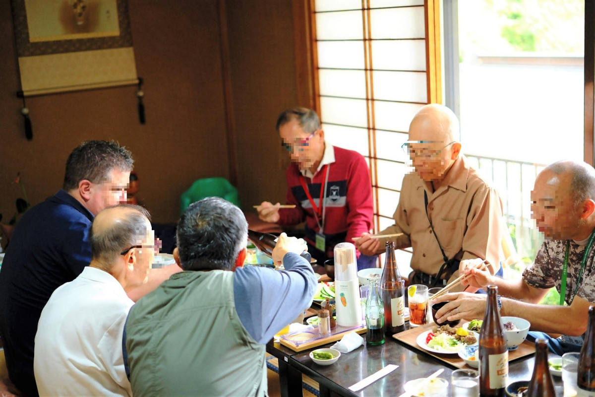 店内には座敷もあり、登山で疲れた身体を癒しながら、みんなでワイワイと昼のひとときを楽しむことができました。表の看板には英語のメニューも掲げられていて、外国からの訪問者も多いそうです。 食事のほかにも甘味やおつまみのメニューがあり、登山の帰りに立ち寄ってホッとひと息つきながら、大山出身の女将との会話を楽しむのも、この店ならではの魅力ですね。