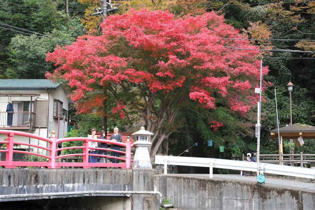 食後の散策では、江戸時代に禊ぎの滝として賑わった愛宕滝へと向かいます。 木々は真っ赤な朱色に染まり、季節の移ろいを鮮やかに映し出していました。愛宕橋とのコラボレ ーションは、この時期ならでは特別な景色。橋と紅葉が織りなす風景に、思わず足を止めて見入っ てしまいます。 そして、秋だけでなく、宿坊の部屋から望む雪景色もまた格別とのこと。寒い季節の澄んだ山の空気に包まれながら、静けさと美しさに浸る時間も、きっと心に残るひとときとなるでしょう。 各店とも趣向を凝らしたジビエ料理が楽しめる「ジビエフェア」は、3月末まで開催中。ぜひ、山の恵みを味わいに足を運んでみてください。季節ごとに表情を変える自然とともに、心もお腹も満たされる時間が待っています。
