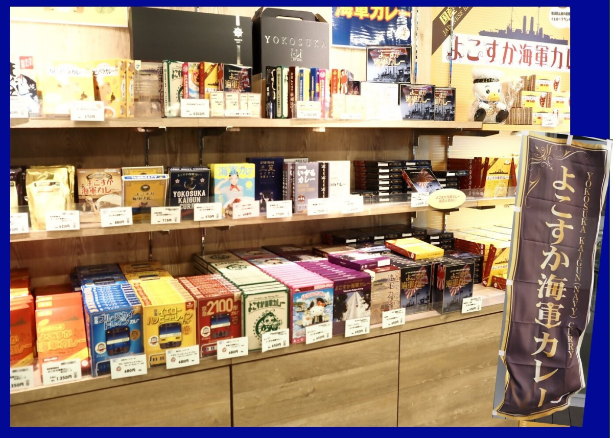 「よこすか海軍カレー」はレストランやカフェで提供されるばかりでなく、 レトルトカレーも販売されています。「カレーの街宣言」が行われた1999年に株式会社調味商事が「よこすか海軍カレー ネイビーブルー」という名前で販売を始めました。その後他会社も続々と新銘柄の「よこすか海軍カレー」を売り出し、今では数えきれないほどの種類が観光案内所をはじめ、市内のショッピングモールや土産物店に並んでいます。