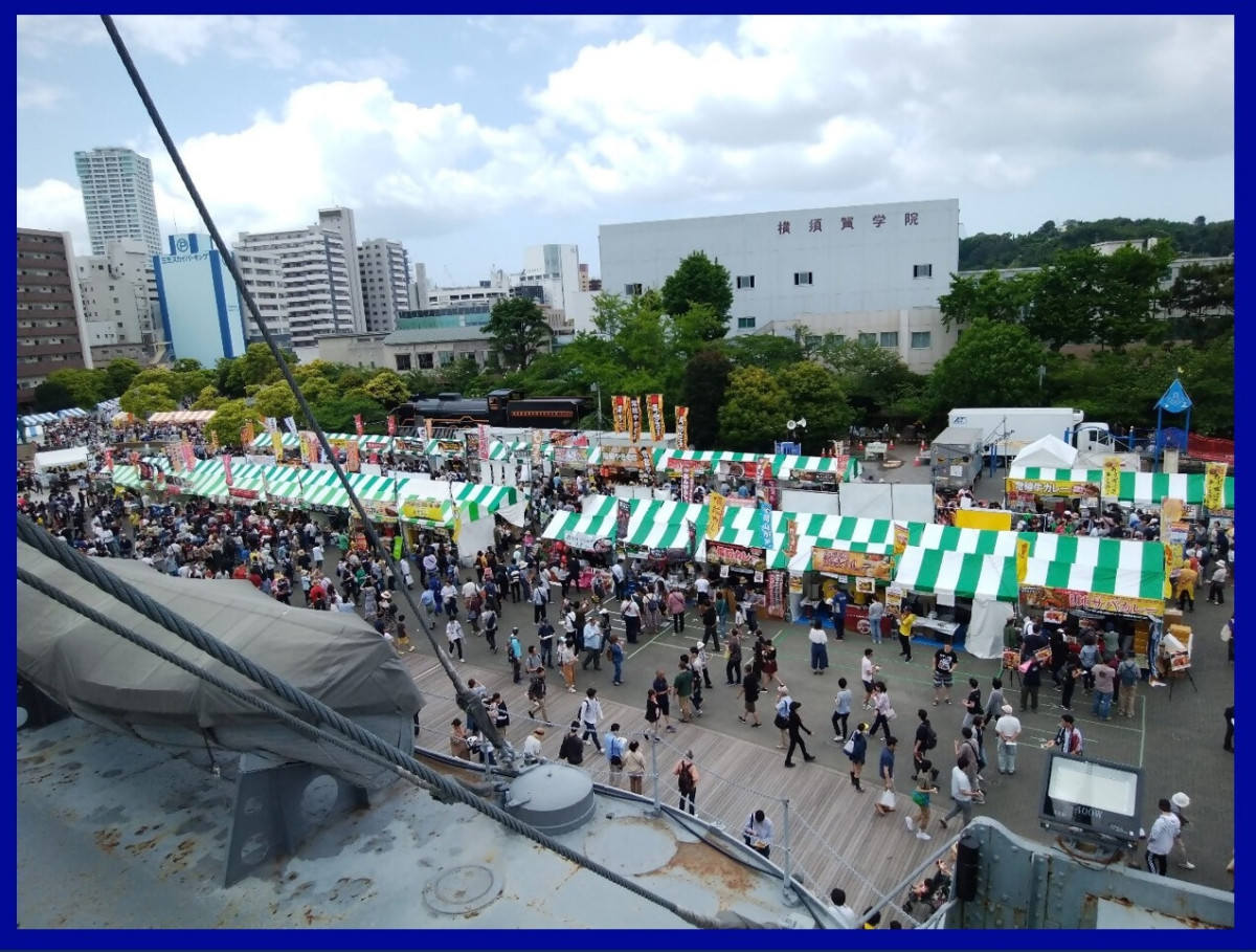 横須賀の街を挙げての一大イベントの一つは「よこすかカレーフェステ ィバル」です。「カレーの街宣言」を行った1999年に第1回が開催されました。毎年5月中旬の土日の2日間に開催され2024年には5万人が来場しました。「よこすか海軍カレー」や「海上自衛隊カレー」のほか、全国各地から集結した個性豊かなカレーもフードブースに並びます。さらに音楽パーフォーマンスや海上自衛隊横須賀地方総監部が一般公開されます。2026年の5月のカレーフェスティバルをお見逃しなく、横須賀においでください。